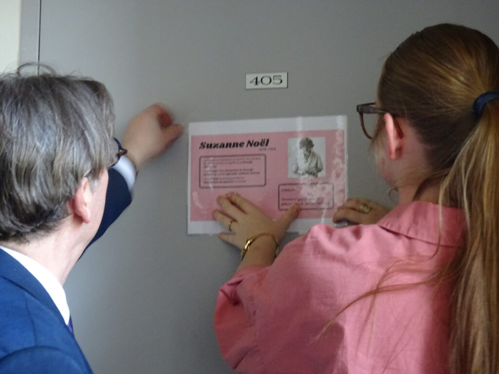 Le groupe d’élèves « Egalité Filles-Garçons » s’investit depuis la rentrée dans l’organisation de nombreuses actions pour soutenir la journée internationale des droits des femmes. Le 9 mars a ainsi été riche en évènements : dans un bâtiment entièrement redécoré, le groupe a invité l’ensemble des élèves et des personnels à montrer leur engagement en portant du violet, à assister à l’inauguration des nouveaux noms des salles de la Charité, à s’informer au stand du planning familial ou encoe à visiter l’exposition et participer aux ateliers artistiques « Couleur genrée ». Certains ont même eu la chance de pouvoir assister au spectacle Figure In-Soumise sur Angela Davies !