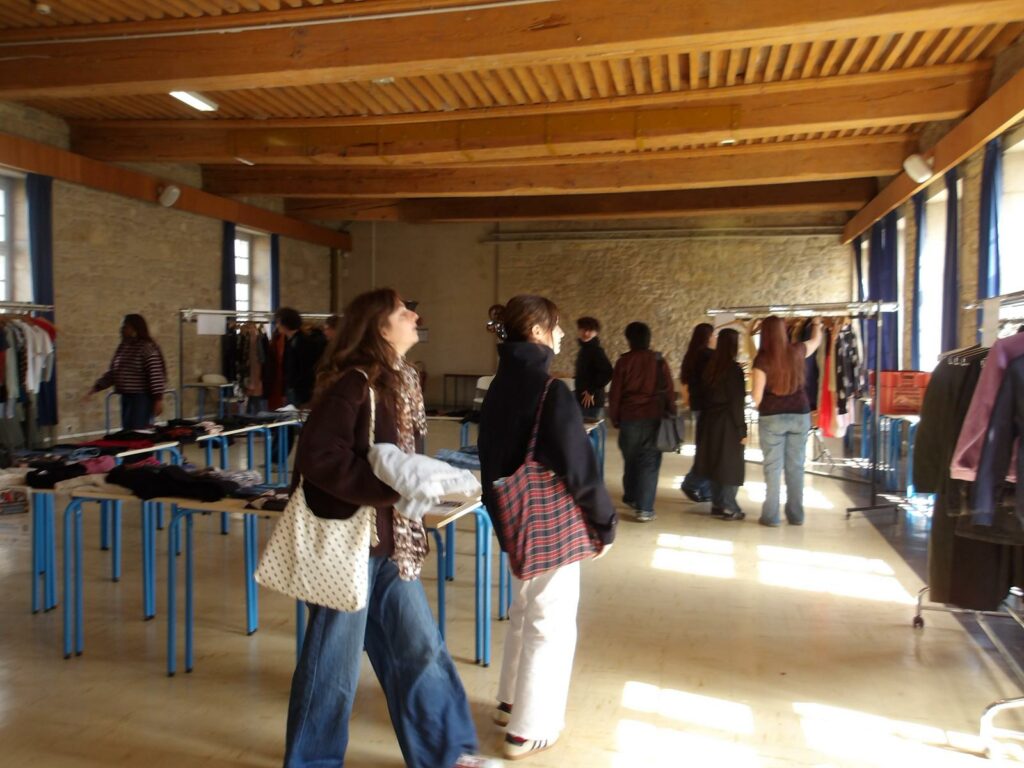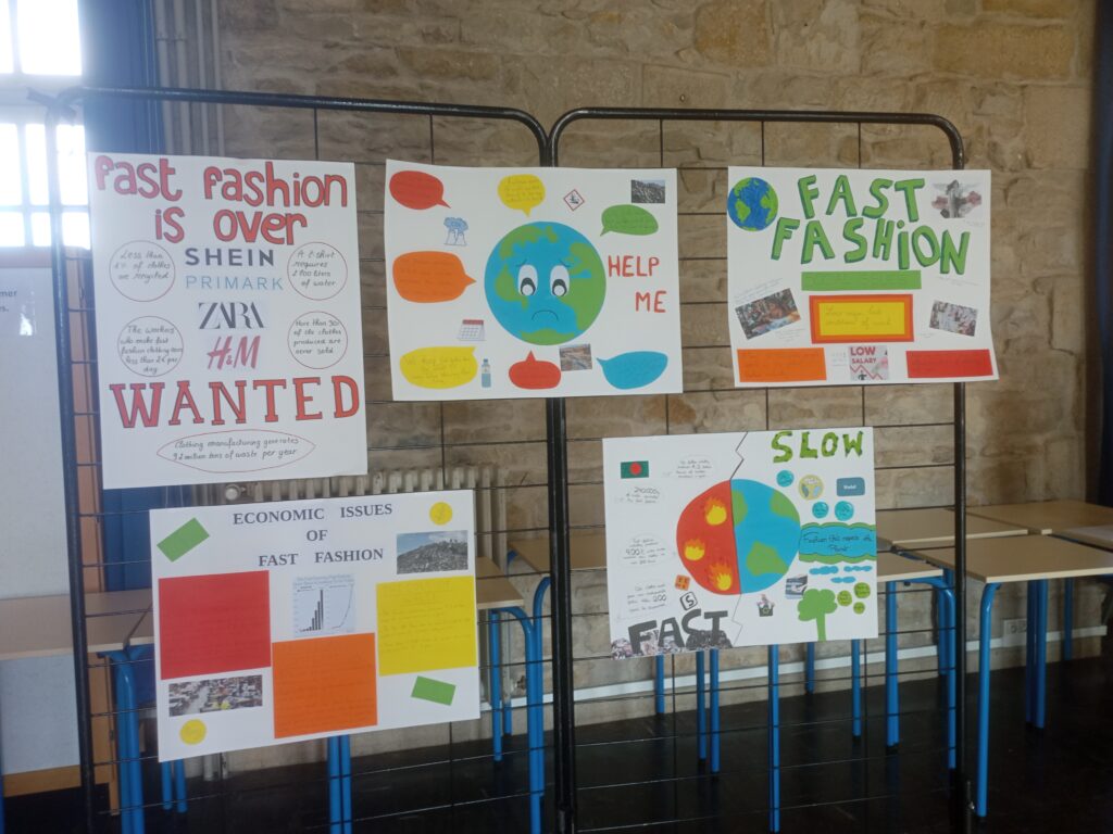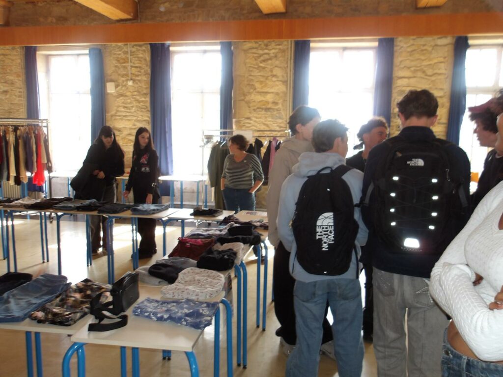Dans le cadre de l’éducation au développement durable et de la semaine de l’économie sociale et solidaire, les éco-délégués du lycée ont organisé une friperie solidaire le vendredi 27 mars. Le principe était simple : tout le monde pouvait faire don de vêtements et accessoires en bon état et tout le monde pouvait le jour de la friperie venir choisir des articles et les emmener gratuitement, pour promouvoir la réutilisation et sensibiliser contre la fast-fashion. A ce titre, les élèves de section européenne anglais avaient également réalisé des affiches sur la fast-fashion et ses conséquences, associées à des podcast audios.