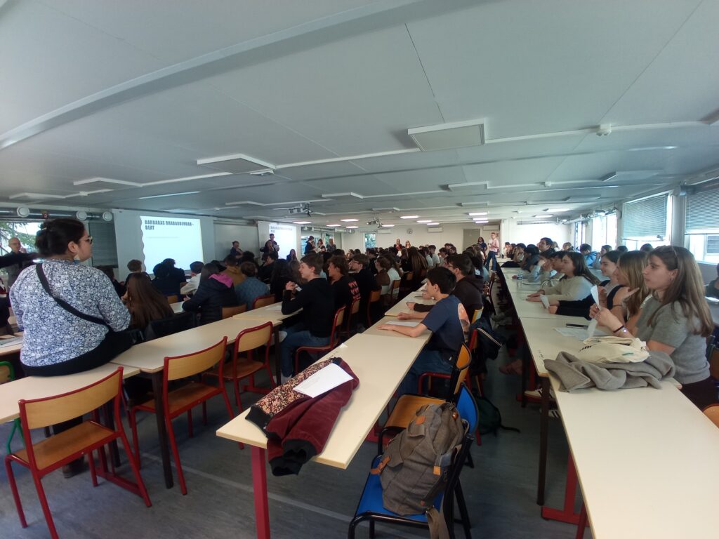 Mardi 21 avril, les élèves de 2°1 et les élèves de 1ère européenne ont pu participer au Journées de l’Allemagne, organisées à Besançon par l’Université Marie et Louis Pasteur à l’occasion des 10 ans de la licence franco-allemande et du lancement d’un nouveau master. L’objectif de cette journée était de célébrer le couple franco-allemand à travers d’ateliers et de présentations riches et à portée de toutes et tous : théâtre, visite de l’université, atelier linguistique, quiz, présentations des programmes de mobilités et témoignages d’étudiants français et allemands ou encore une exposition.